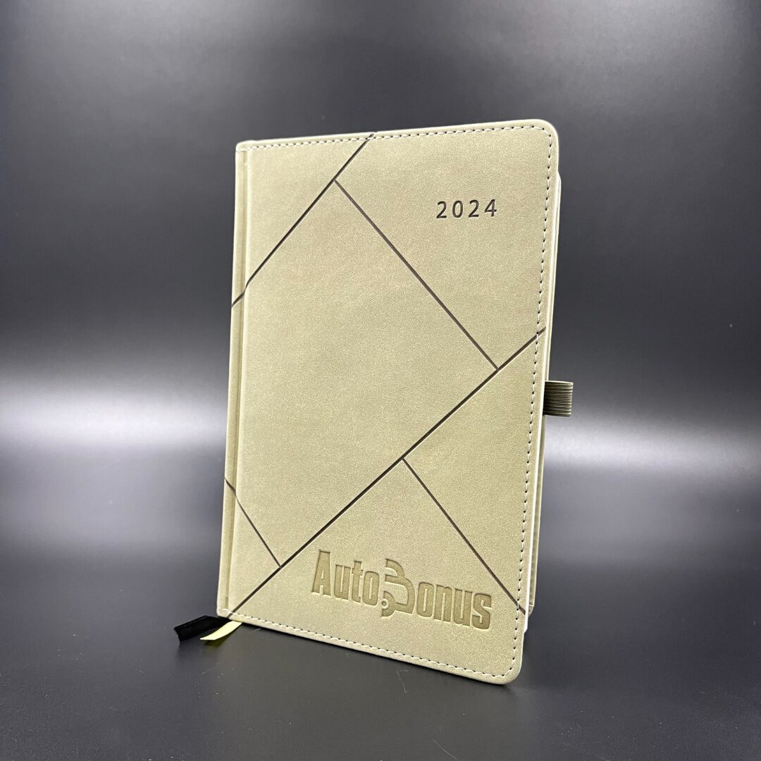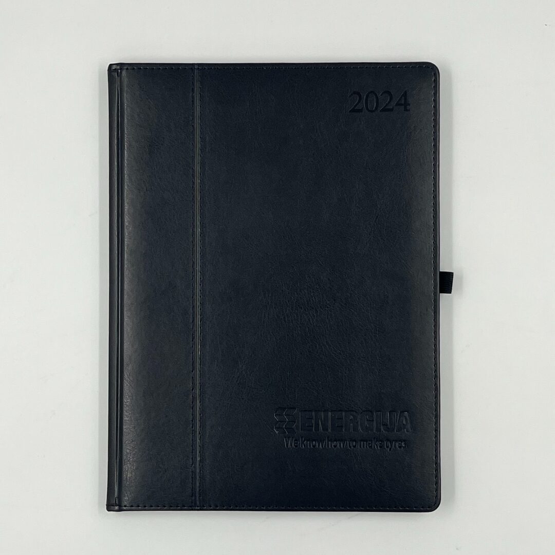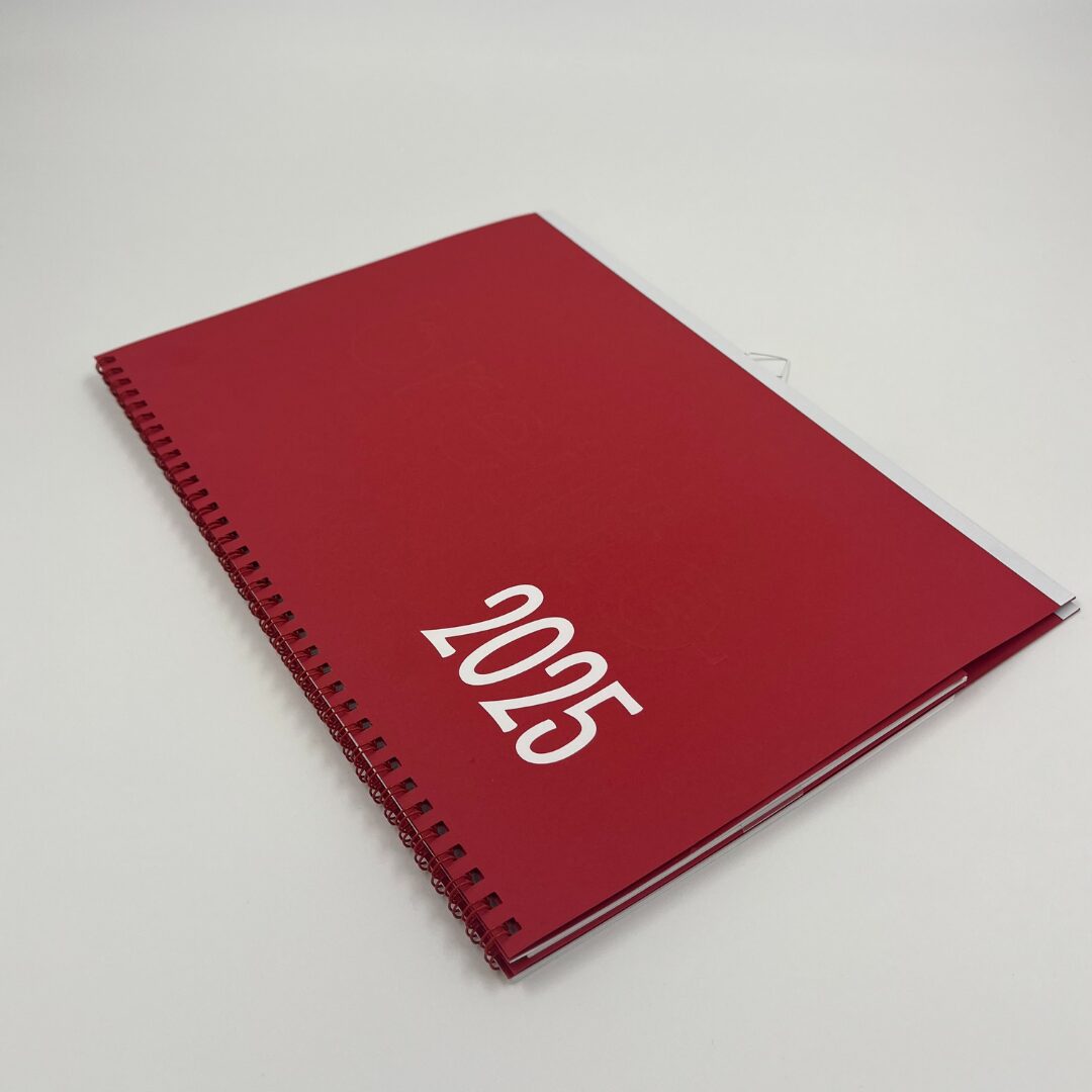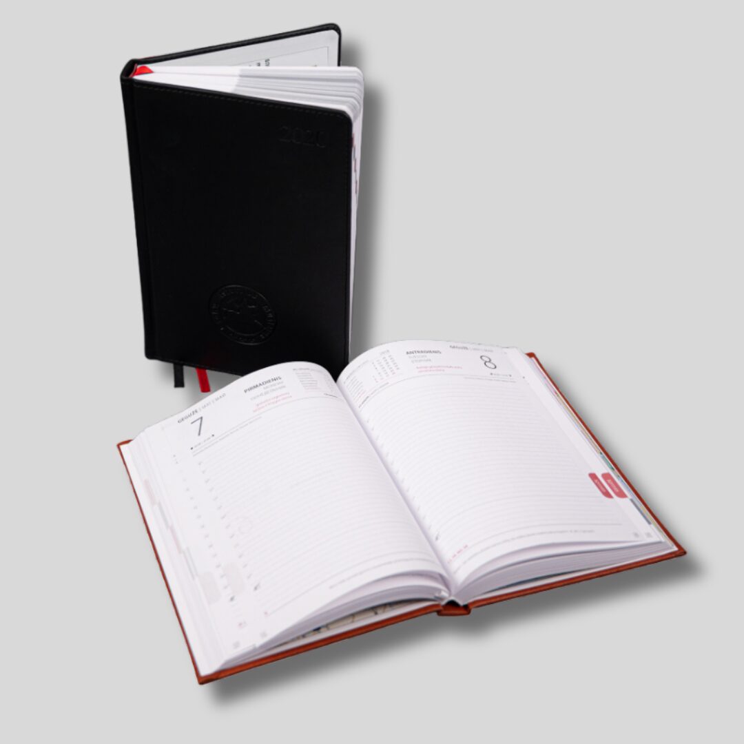 Spauda: kalendoriai yra skirtingų spalvų viršeliais ant kurių galime spausdinti logotipus UV spauda, šilkografija, folijavimas, įspaudas ar lazeriavimas. Galimi ir individualūs viršeliai.